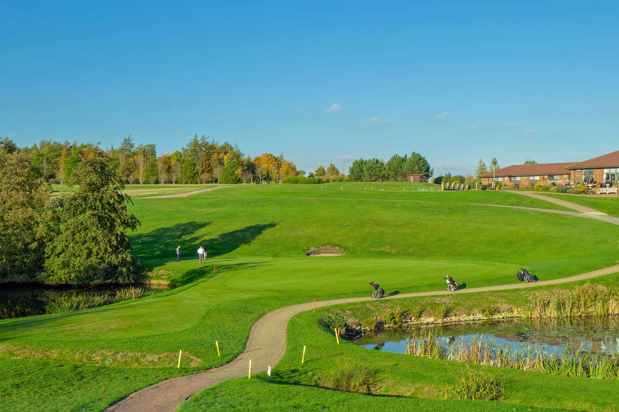 Finish in style with this challenging dogleg par 4. A tricky second shot onto a downhill green surrounded by water requires all your concentration as the clubhouse comes into view.