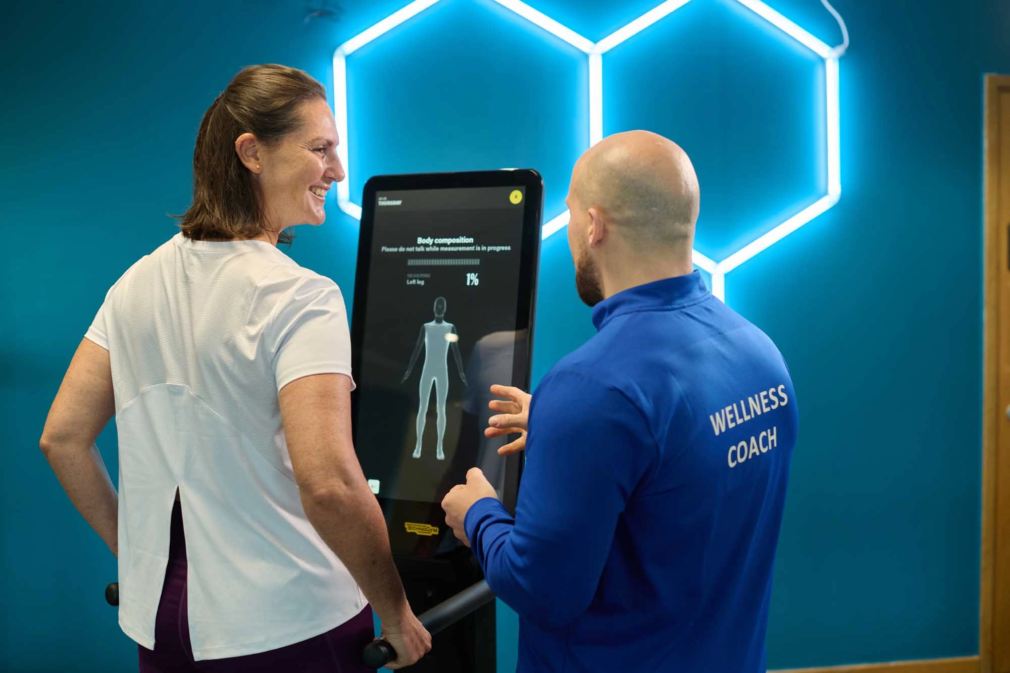 The Wellbeing Check uses advanced digital innovation to reveal your body’s true wellness age, assessing six key areas: body composition, mobility, balance, mind, strength, and cardiovascular health – then creating a personalised programme tailored to your results.